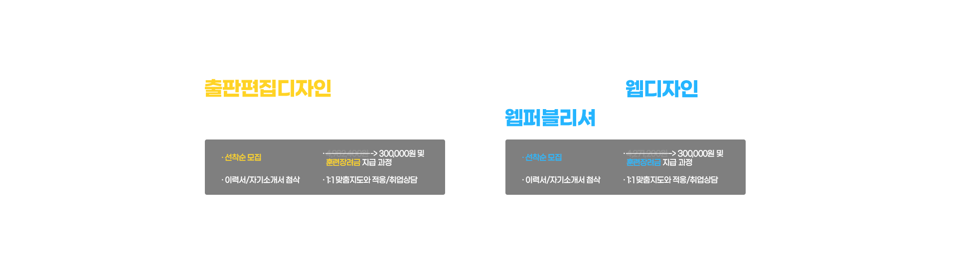 김정원, 김도경 취업생다른 교육과정 이후에 심화 과정에 대한 필요성을 인지해서 관련 교육을 찾아보다가 하이미디어의 교육과정을 확인해보니 포르폴리오 중심의 커리큘럼에서 많은 도움을 받을 수 있을것 같아 선택하게 되었습니다. -