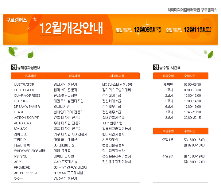 [개강일 변경] 12월 평일반 개강일이 12월 6일에서 9일로 변경되었습니다.