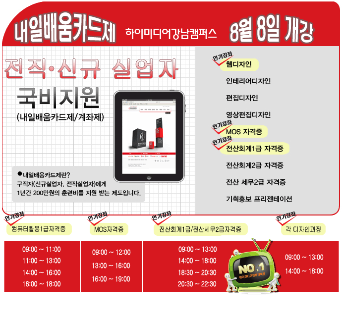 [계좌제 내일배움카드 개강] 2011년 8월 계좌제 개강안내