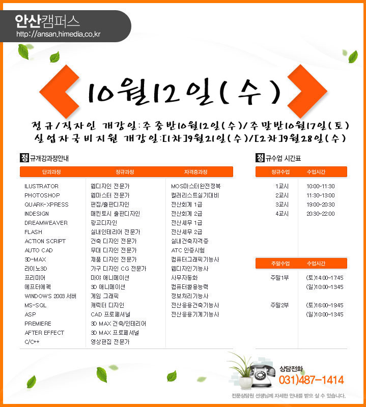 [정규개강]안산캠퍼스 2011년10월 정규개강안내