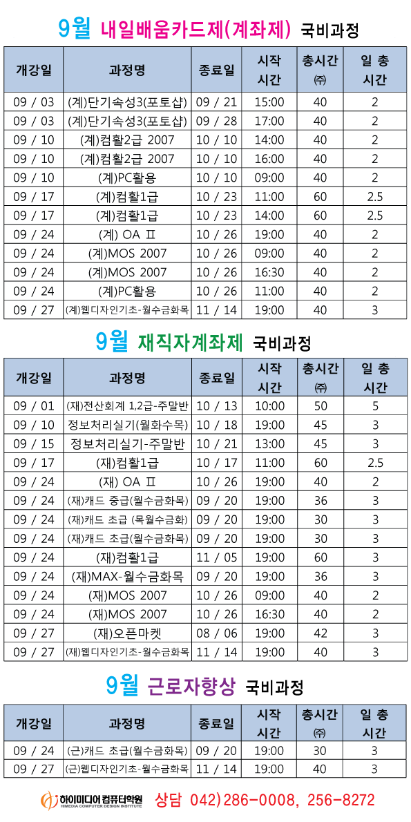 [정규개강]2012년 9월 개강일정입니다.(대전캠퍼스)